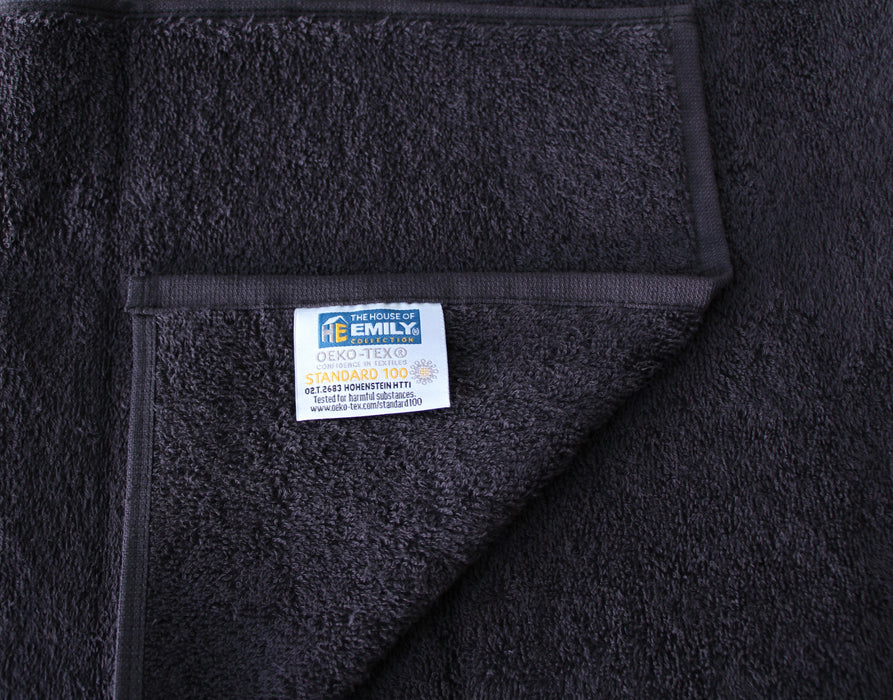 Black Gym Sport Small Hand Guest Towels 30 x 85cm 100% Cotton 450gsm